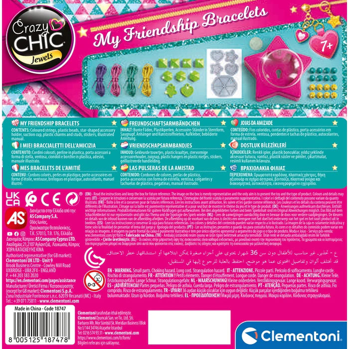 Cria acessórios únicos para partilhar com as melhores amigas! O conjunto Jóias da Amizade – Crazy Chic inclui tudo o que é necessário para fazer pulseiras e colares personalizados, cheios de cor e estilo. Ideal para estimular a criatividade, coordenação e imaginação das crianças.