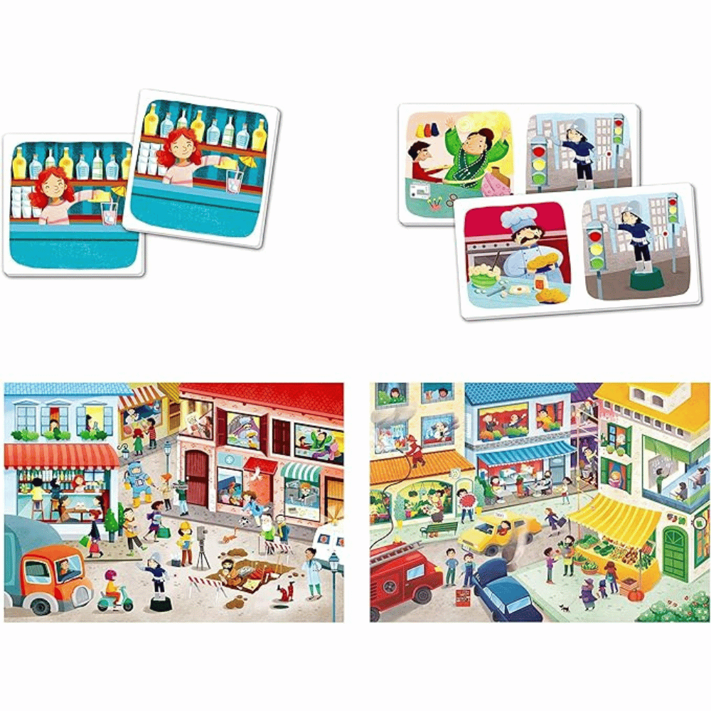 👩🚒👨🍳 Superkit Memo + Dominó + 2 Puzzles 30 peças – Profissões 👮♀️👨🏫