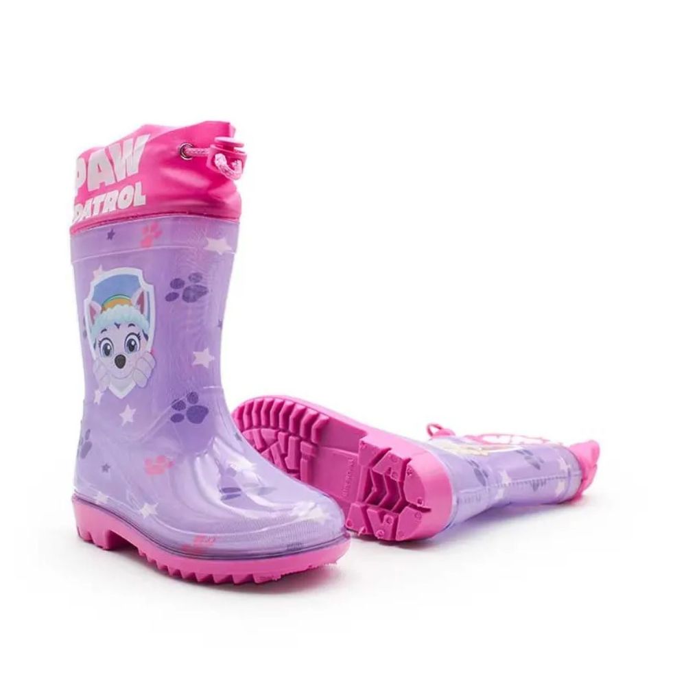 As Galochas com fecho da Patrulha Pata Skye e Everest são uma opção prática e confortável para manter os pés dos mais pequenos secos nos dias de chuva.